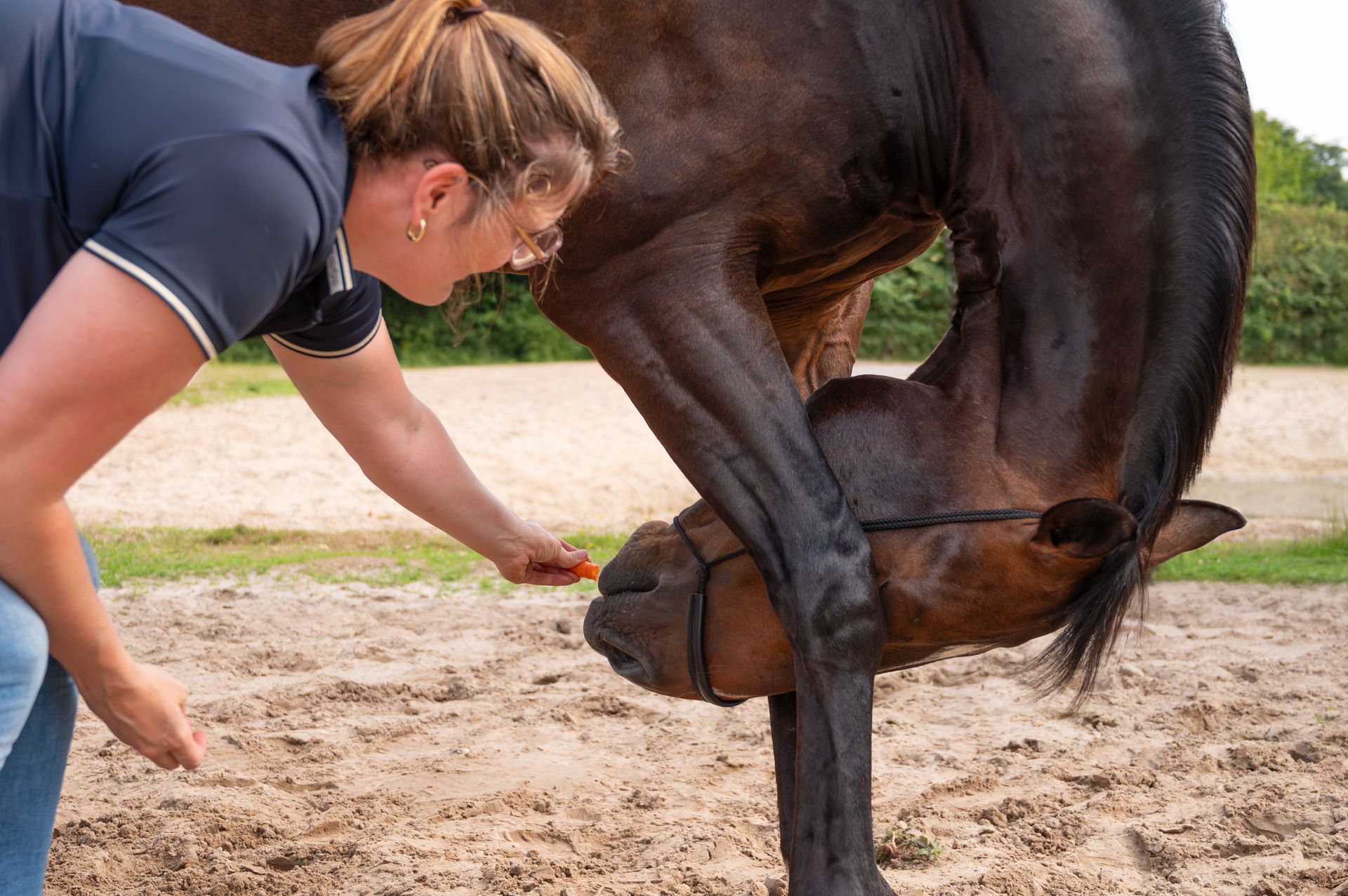 Een eerste sessie begint altijd met een korte observatie en intake, waarbij ik kijk naar de bouw, beweging en eventuele aandachtspunten van je paard. Daarna volgt de stretching en mobilisatie, volledig afgestemd op de specifieke behoefte van jouw paard.
